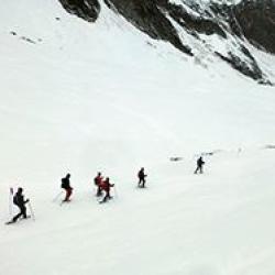 Natürlich sollte man auch noch wissen was denn ein "LVS" ist. LVS steht für Lawinenverschüttetensuchgerät und wird während einer Tour am Körper getragen, damit man von seinen Kameraden (vielleicht) gefunden wird, sollte man unter eine Lawine geraten. Wenn man alleine unterwegs ist, bringt einem ein solches Gerät nichts, denn um gefunden zu werden, muss mindestens eine zweite Person in der Nähe sein, die ebenfalls ein solches Gerät bei sich hat. Die neueren Geräte sind einfach zu bedienen und zeigen dem Suchenden die Richtung an, wo sich das Opfer befindet. Trotzdem muss der Umgang mit diesen Geräten geschult werden, denn im Notfall sollte man alles im Griff haben.
