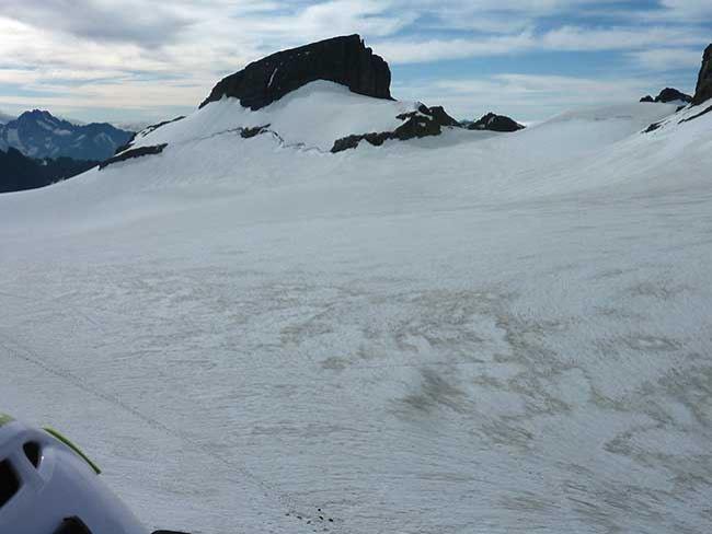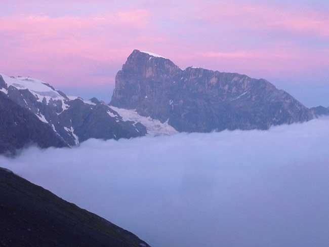 Während der SAC- Ausbildungswoche "Grundkurs Hochtouren" in der Spannorthütte in Engelberg, können wir jetzt unser Wissen unter Beweis stellen. Der Wetterbericht ist gut und wir marschieren um 5:15 Uhr am Morgen von der Hütte los. Es ist noch fast dunkel fast ein bisschen unheimlich. Aber schon bald kommen und die ersten Sonnenstrahlen entgegen und wir blicken runter, auf die Nebeldecke. Der Weg zum Gletscher ist recht steil und man muss aufpassen, dass man im Geröll nicht abrutscht. Aber der Weg ist gut markiert und wir folgen den weiss-blauen Zeichen. Nach dem Aufstieg erreichen wir den Gletscher, und montieren uns die Steigeisen und seilen uns an. Auch Kappe und Handschuhe sind jetzt nötig, denn es bläst ein kalter Wind. Dann geht es weiter auf dem Schnee, der meistens ziemlich nass ist. Vom Gletschereis sehen wir leider nicht viel, dafür sind fast alle Gletscherspalten zugeschneit. Weil man die Spalten nicht sieht, sind wir froh, dass wir uns angeseilt haben, denn man kann nie wissen, wie gut der Schnee auf den Spalten hält und ob er nicht plötzlich einbricht. Angeblich hat es auf diesem Gletscher sehr viele Spalten, die man manchmal auch gut sehen kann.