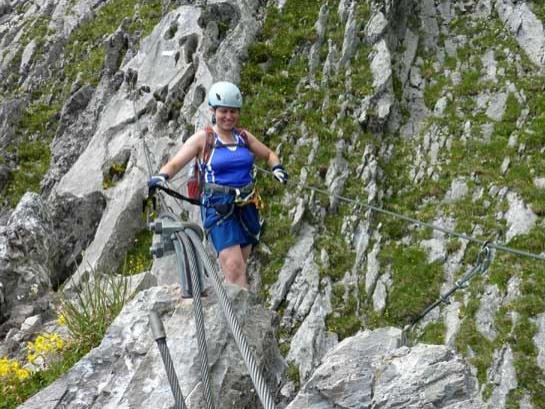 Gleich am Anfang muss ein bisschen geklettert werden, aber zum Glück kann man sich immer am Stahlseil festhalten oder notfalls sogar raufziehen. Trotzdem ist eine gute Trittfestigkeit und ein bisschen Erfahrung im Felsklettern von Vorteil. Oben auf dem Gipfel geniesst man eine wunderschöne Aussicht, vorausgesetzt es hat keinen Nebel.