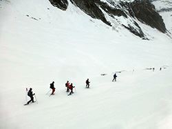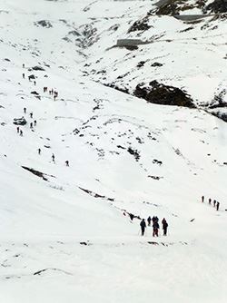 Natürlich sollte man auch noch wissen was denn ein "LVS" ist. LVS steht für Lawinenverschüttetensuchgerät und wird während einer Tour am Körper getragen, damit man von seinen Kameraden (vielleicht) gefunden wird, sollte man unter eine Lawine geraten. Wenn man alleine unterwegs ist, bringt einem ein solches Gerät nichts, denn um gefunden zu werden, muss mindestens eine zweite Person in der Nähe sein, die ebenfalls ein solches Gerät bei sich hat. Die neueren Geräte sind einfach zu bedienen und zeigen dem Suchenden die Richtung an, wo sich das Opfer befindet. Trotzdem muss der Umgang mit diesen Geräten geschult werden, denn im Notfall sollte man alles im Griff haben.